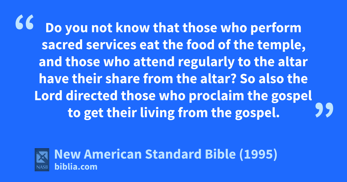 13 aDo you not know that those who bperform sacred services eat the food of the temple, and those who attend regularly to the altar have their share 1from the altar?