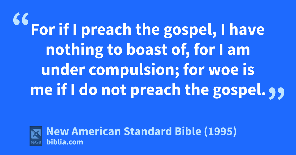 16 For if I preach the gospel, I have nothing to boast of, for aI am under compulsion; for woe is me if I do not preach bthe gospel.