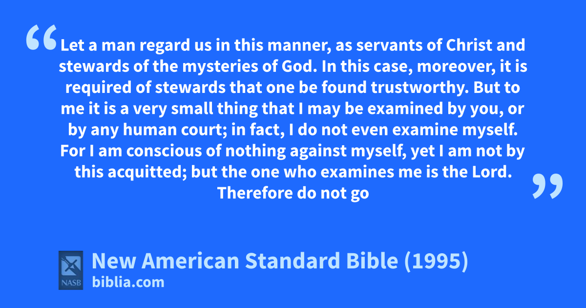 4 For I aam conscious of nothing against myself, yet I am not by this bacquitted; but the one who examines me is the Lord.