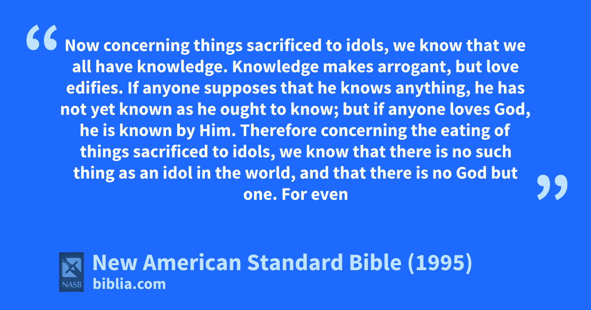1 Now concerning athings sacrificed to idols, we know that we all have bknowledge. Knowledge 1cmakes arrogant, but love dedifies.