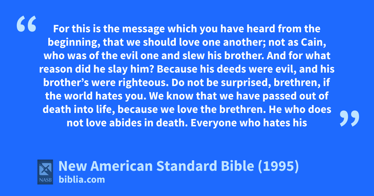 15 Everyone who ahates his brother is a murderer; and you know that bno murderer has eternal life abiding in him.