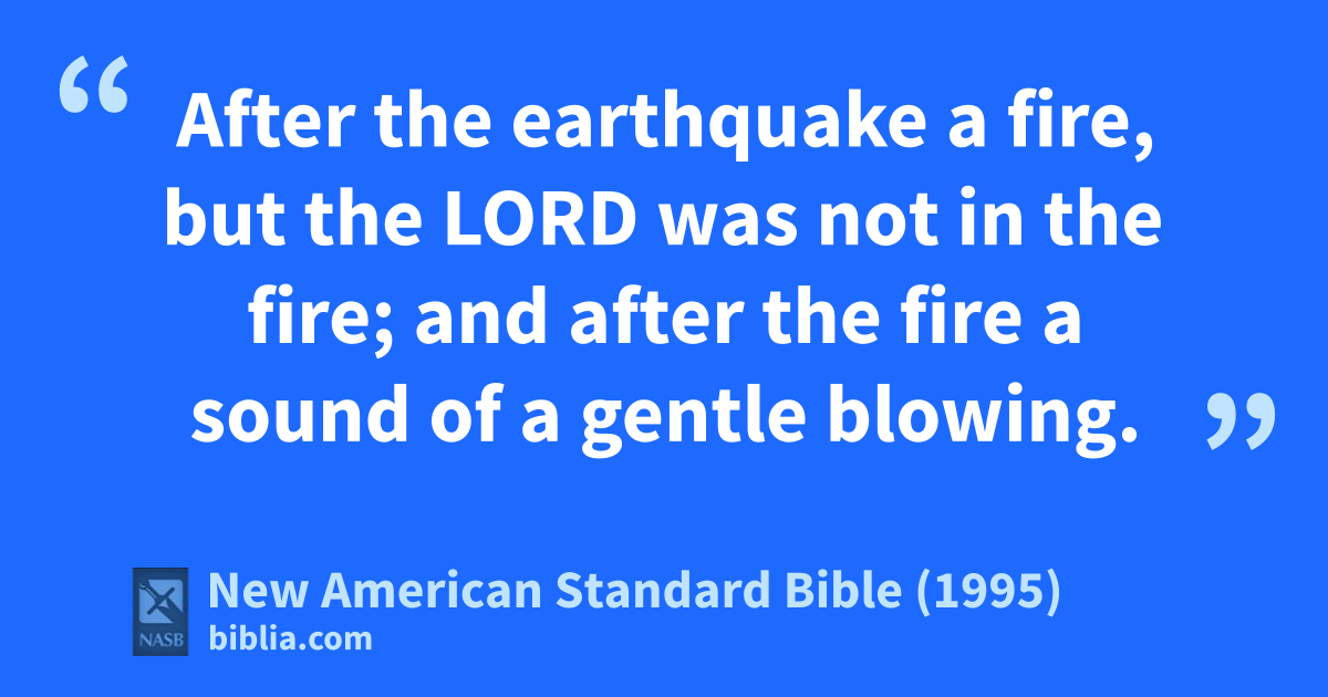 11 So He said, “aGo forth and stand on the mountain before the Lord.” And behold, the Lord was passing by! And ba great and strong wind was rending the mountains and breaking in pieces the rocks before the Lord; but the Lord was not in the wind. And after the wind an earthquake, but the Lord was not in the earthquake.