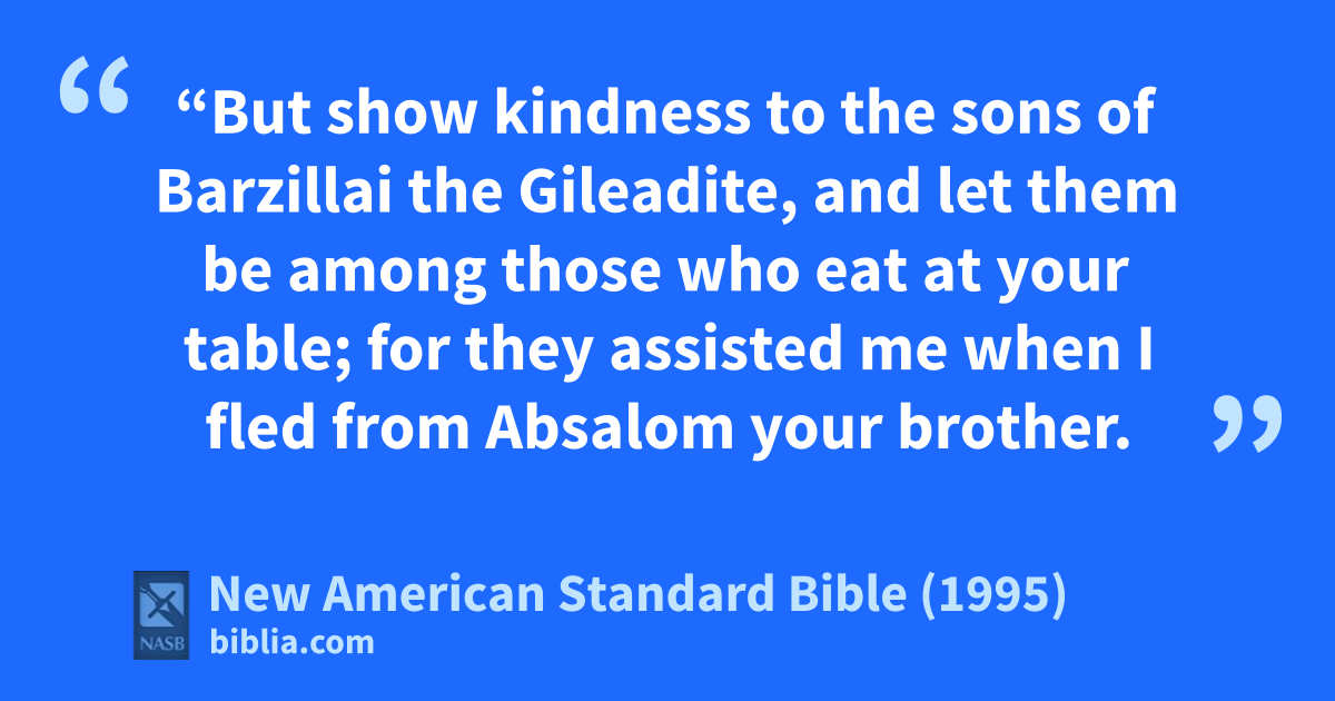 7 “But ashow kindness to the sons of Barzillai the Gileadite, and blet them be among those who eat at your table; cfor they 1assisted me when I fled from Absalom your brother.