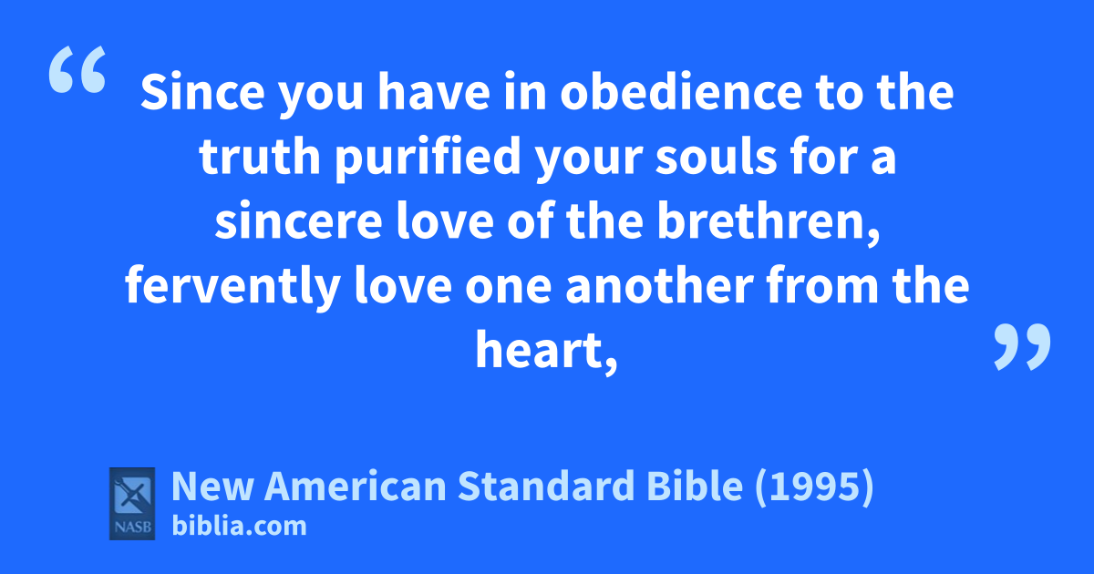 22 Since you have ain obedience to the truth bpurified your souls for a 1csincere love of the brethren, fervently love one another from 2the heart,
