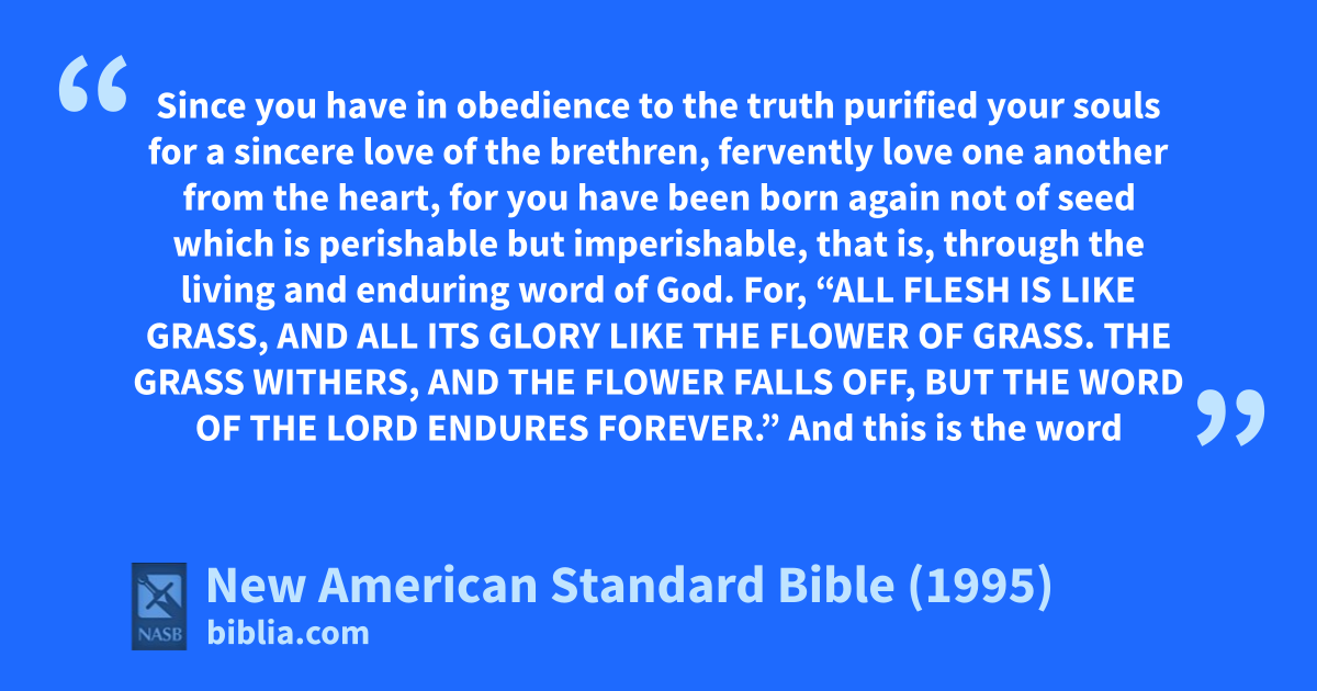22 Since you have ain obedience to the truth bpurified your souls for a 1csincere love of the brethren, fervently love one another from 2the heart,