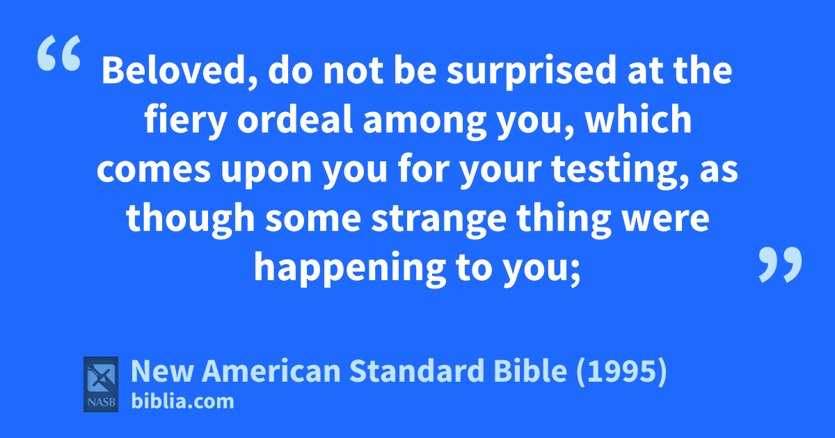 12 aBeloved, do not be surprised at the bfiery ordeal among you, which comes upon you for your testing, as though some strange thing were happening to you;
