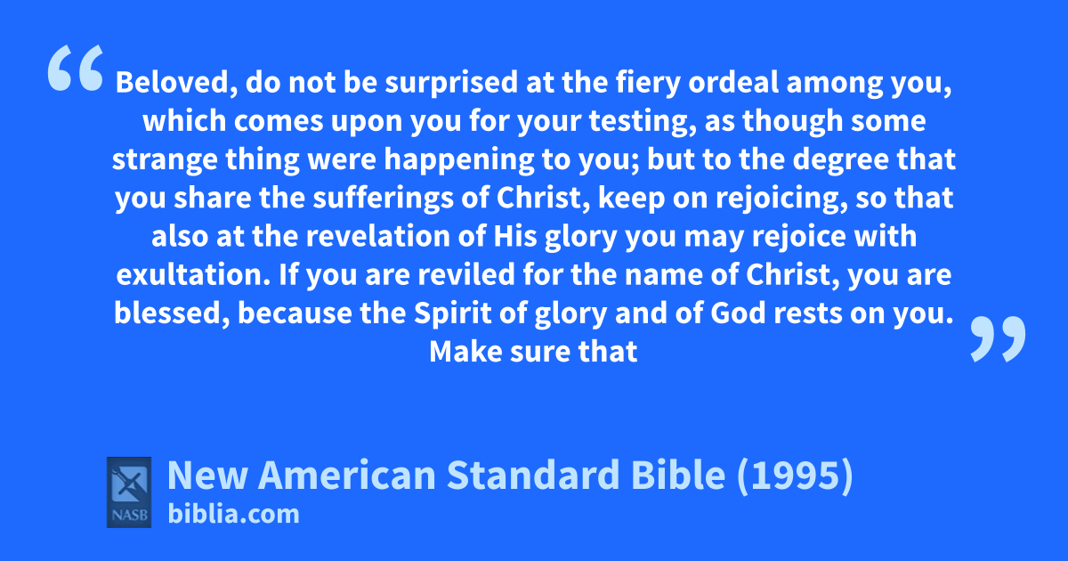 12 aBeloved, do not be surprised at the bfiery ordeal among you, which comes upon you for your testing, as though some strange thing were happening to you;