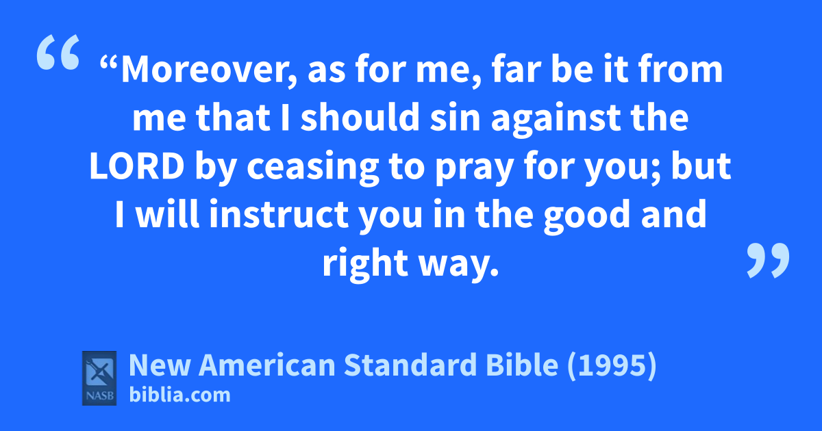 23 “Moreover, as for me, afar be it from me that I should sin against the Lord by ceasing to pray for you; but bI will instruct you in the good and right way.