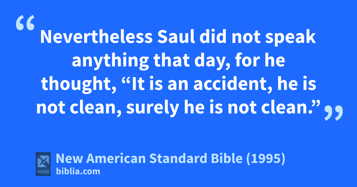26 Nevertheless Saul did not speak anything that day, for he thought, “It is an accident, ahe is not clean, surely he is not clean.”