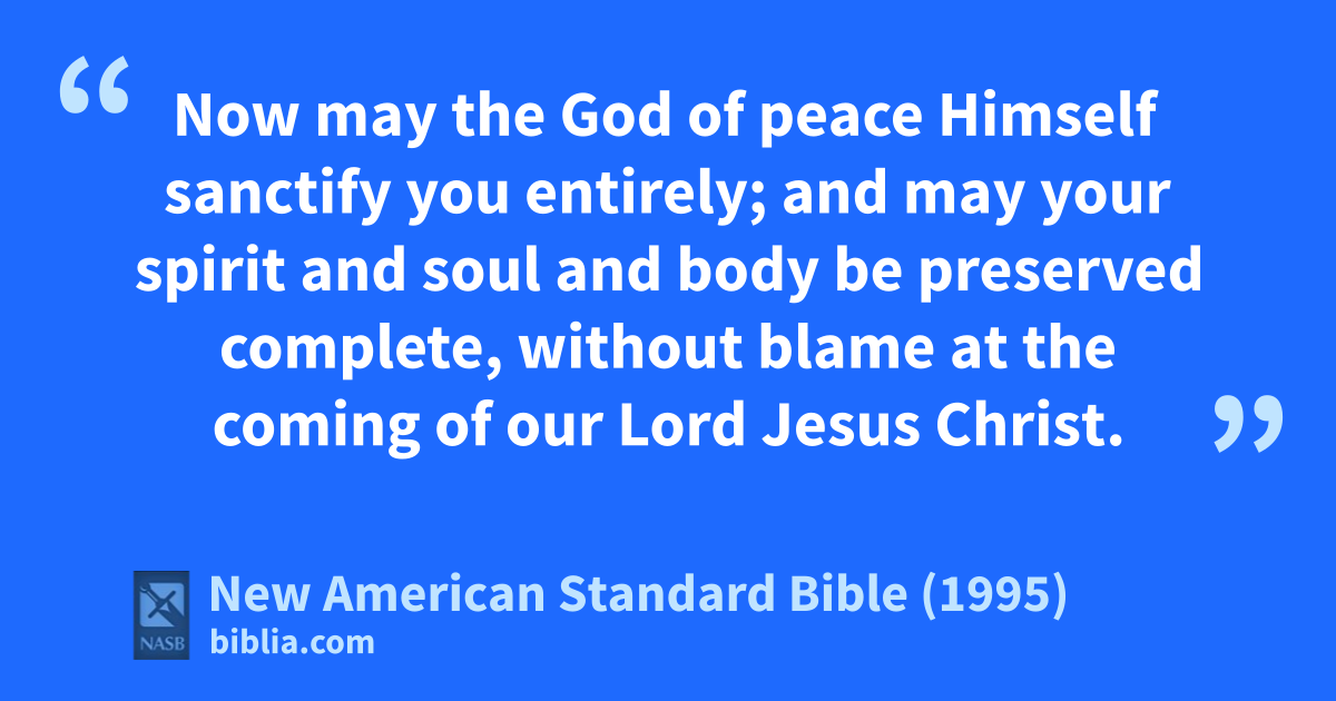 23 Now amay the God of peace bHimself sanctify you entirely; and may your cspirit and soul and body be preserved complete, dwithout blame at ethe coming of our Lord Jesus Christ.
