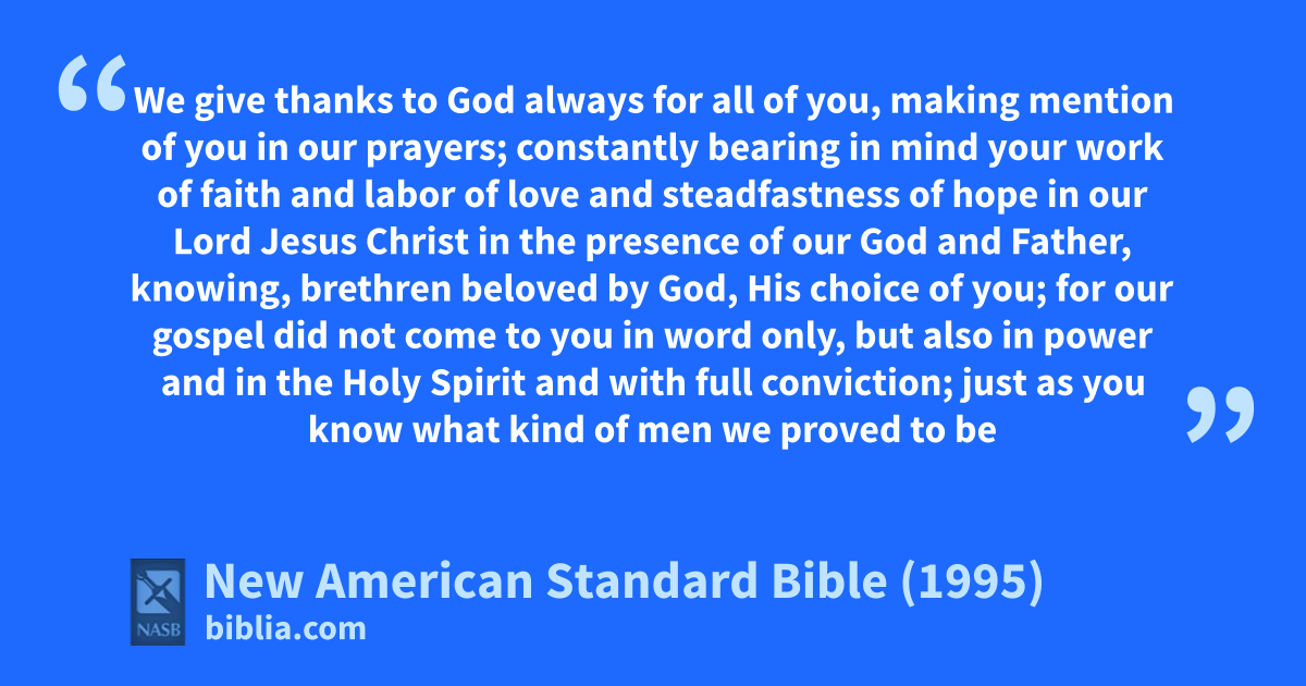 3 constantly bearing in mind your awork of faith and labor of blove and 1csteadfastness of hope 2in our Lord Jesus Christ in the presence of dour God and Father,