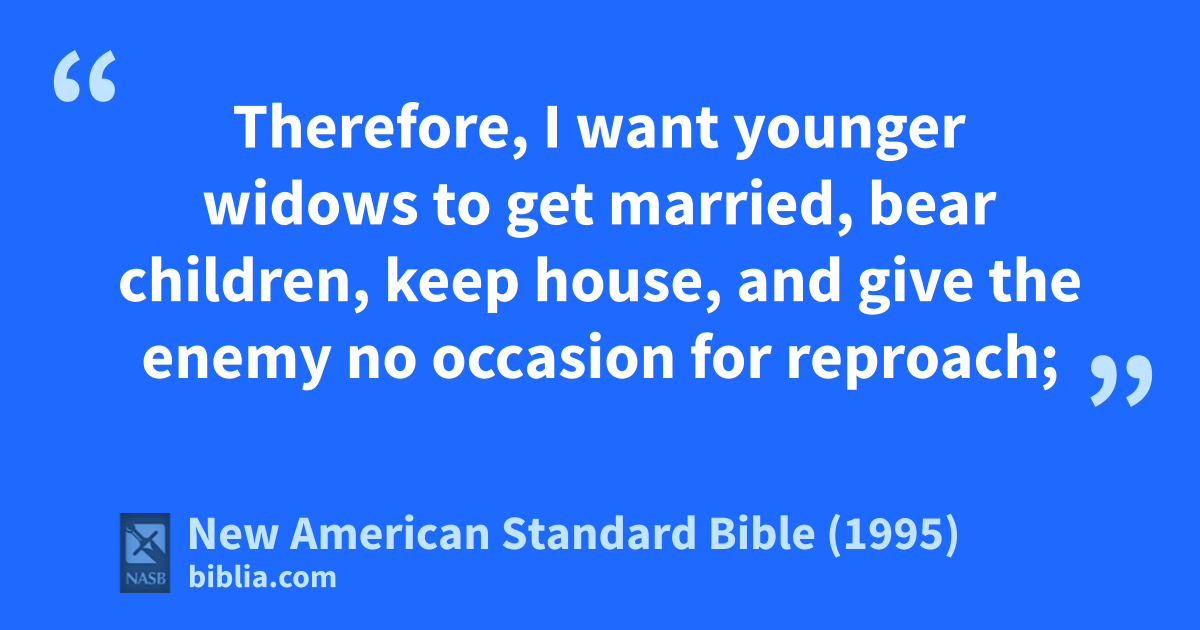 14 Therefore, I want younger widows to get amarried, bear children, bkeep house, and cgive the enemy no occasion for reproach;