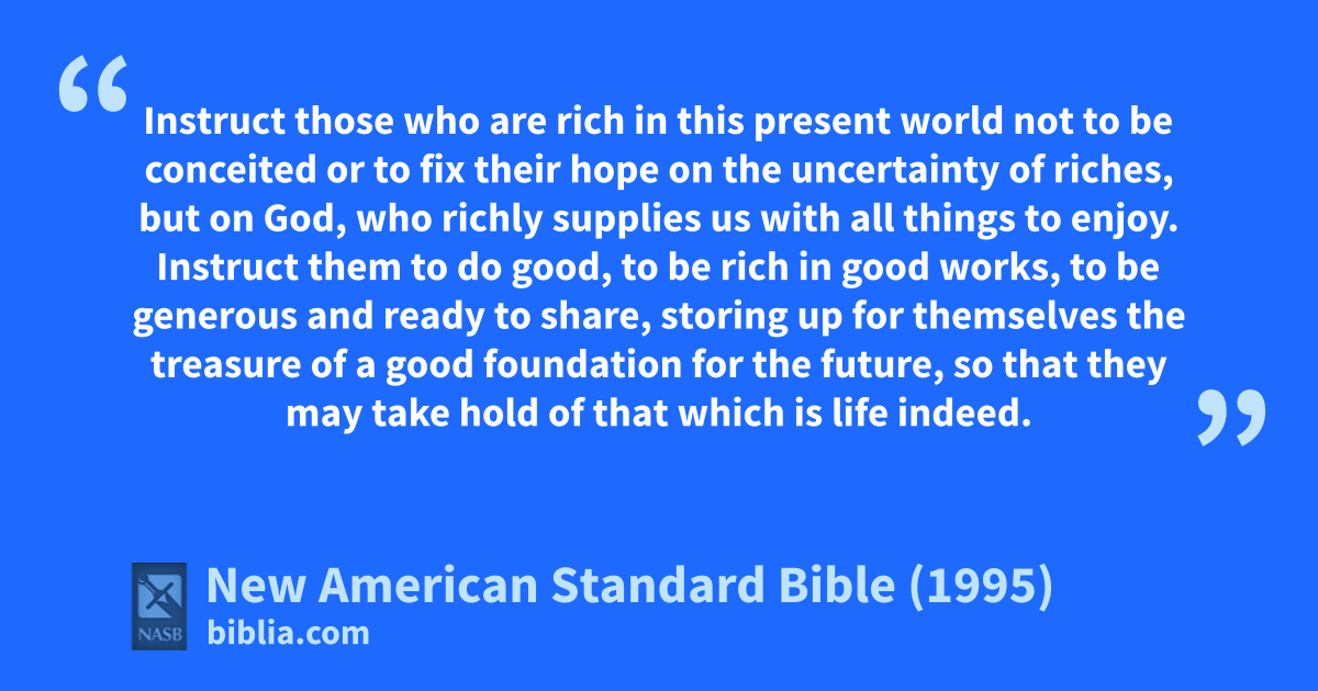 17 Instruct those who are rich in athis present world bnot to be conceited or to cfix their hope on the uncertainty of riches, but on God, dwho richly supplies us with all things to enjoy.