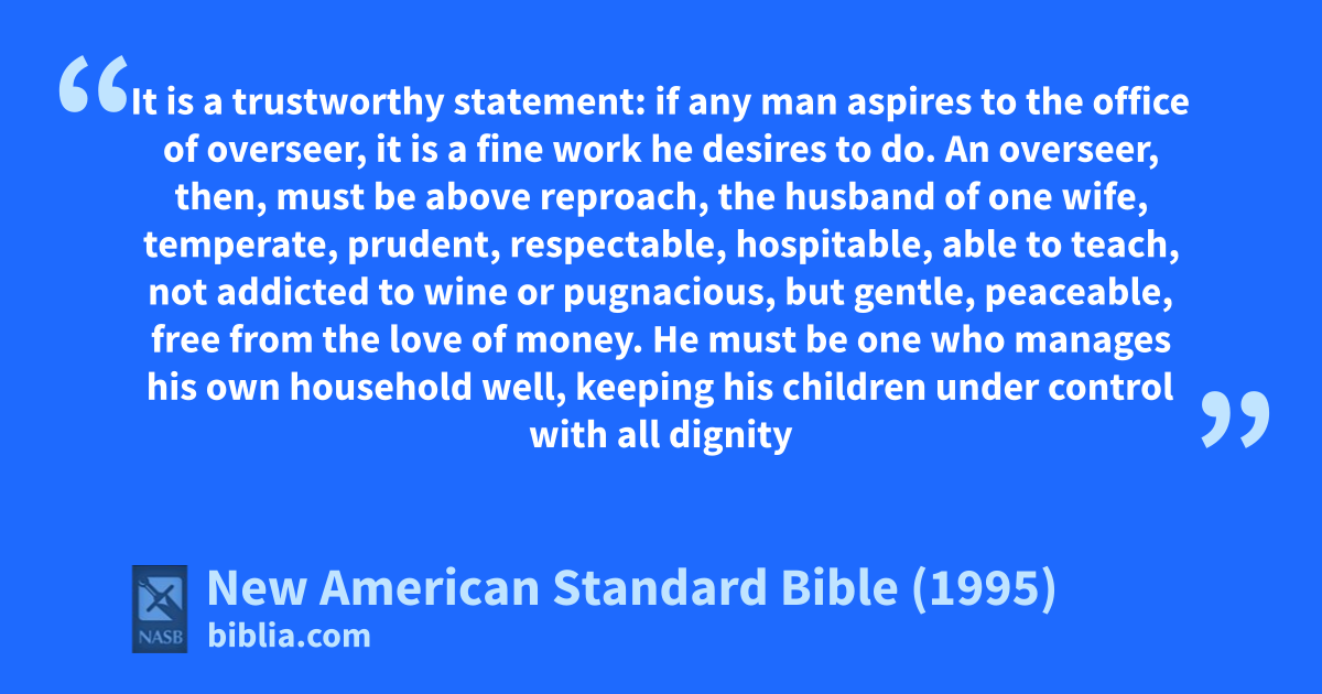 1 aIt is a trustworthy statement: if any man aspires to the boffice of 1overseer, it is a fine work he desires to do.