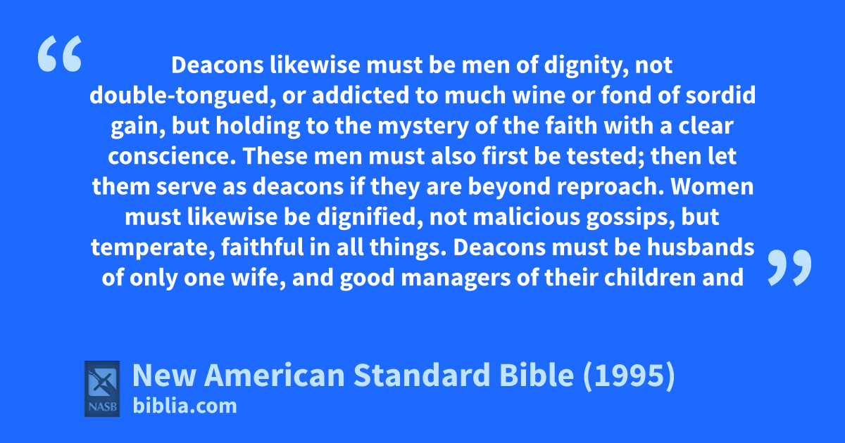 12 aDeacons must be bhusbands of only one wife, and 1cgood managers of their children and their own households.