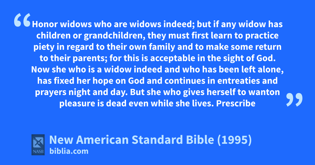 4 but if any widow has children or grandchildren, athey must first learn to practice piety in regard to their own family and to 1make some return to their parents; for this is bacceptable in the sight of God.
