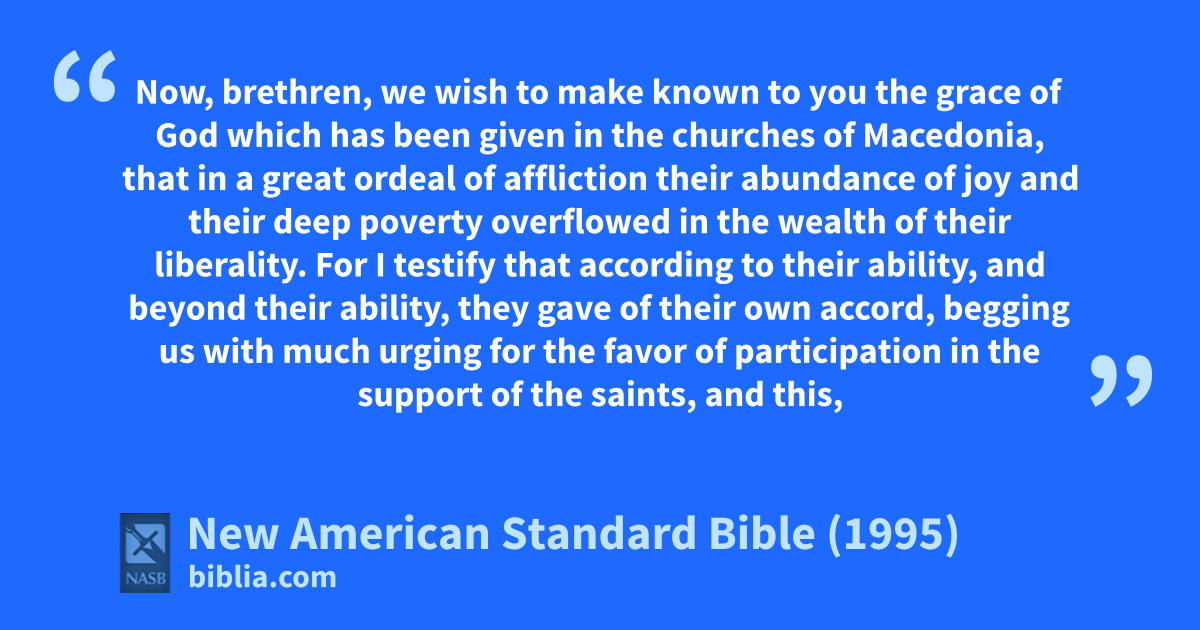 1 Now, brethren, we wish to make known to you the grace of God which has been agiven in the churches of bMacedonia,