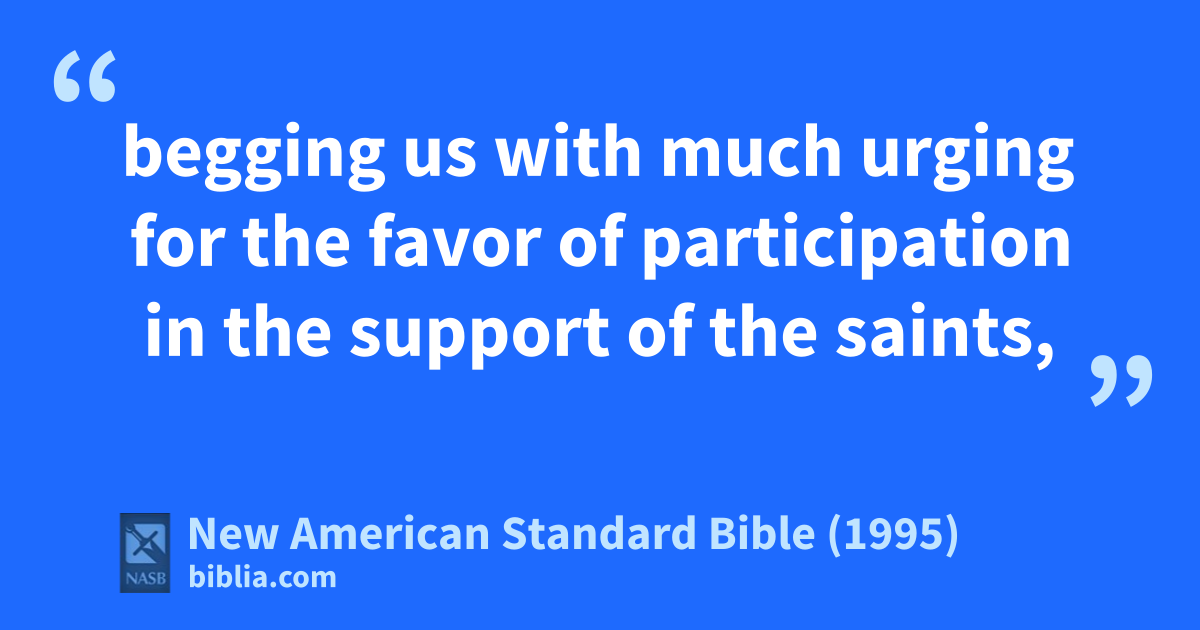4 begging us with much urging for the afavor 1of participation in the 2bsupport of the 3saints,