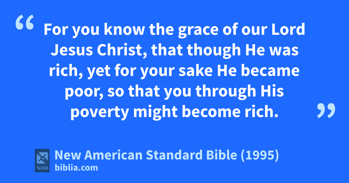 9 For you know athe grace of our Lord Jesus Christ, that bthough He was rich, yet for your sake He became poor, so that you through His poverty might become rich.