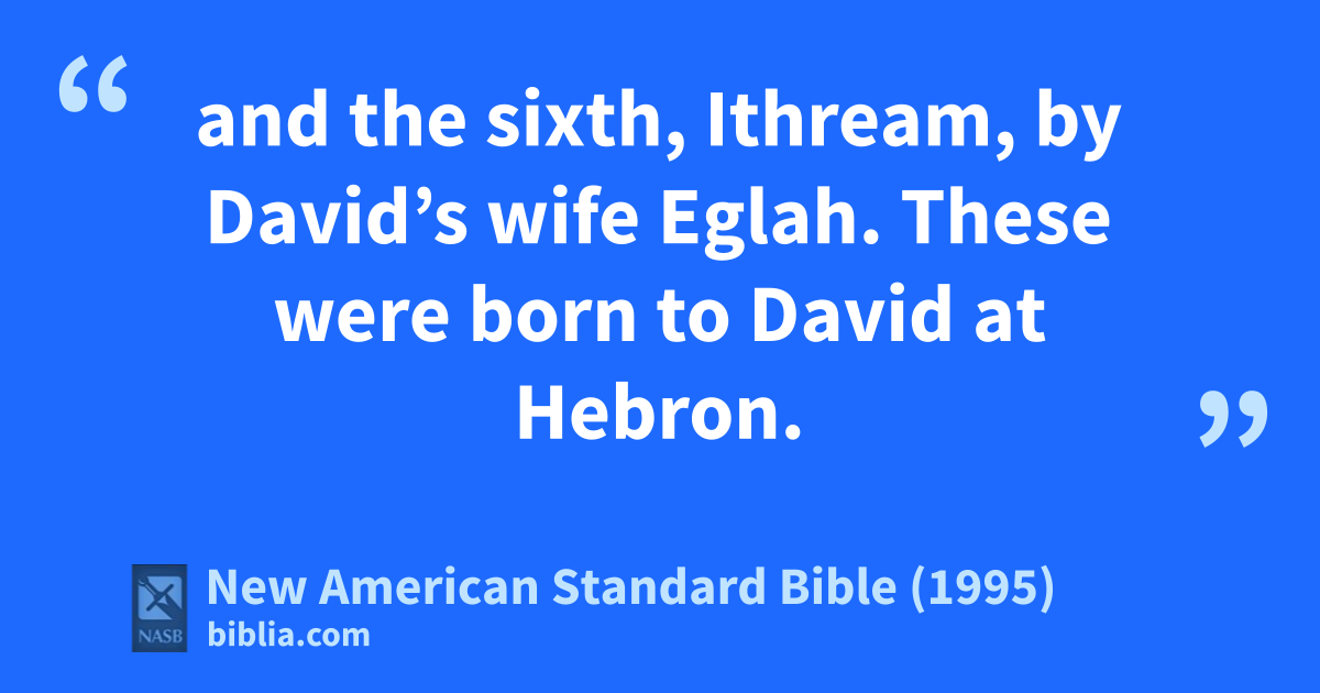 5 and the sixth, Ithream, by David’s wife Eglah. These were born to David at Hebron.