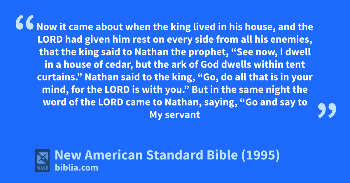 2 that the king said to aNathan the prophet, “See now, I dwell in ba house of cedar, but the ark of God cdwells within tent curtains.”