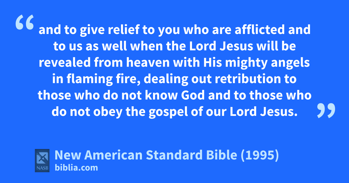 7 and to give relief to you who are afflicted 1and to us as well 2awhen the Lord Jesus will be revealed bfrom heaven cwith 3His mighty angels din flaming fire,