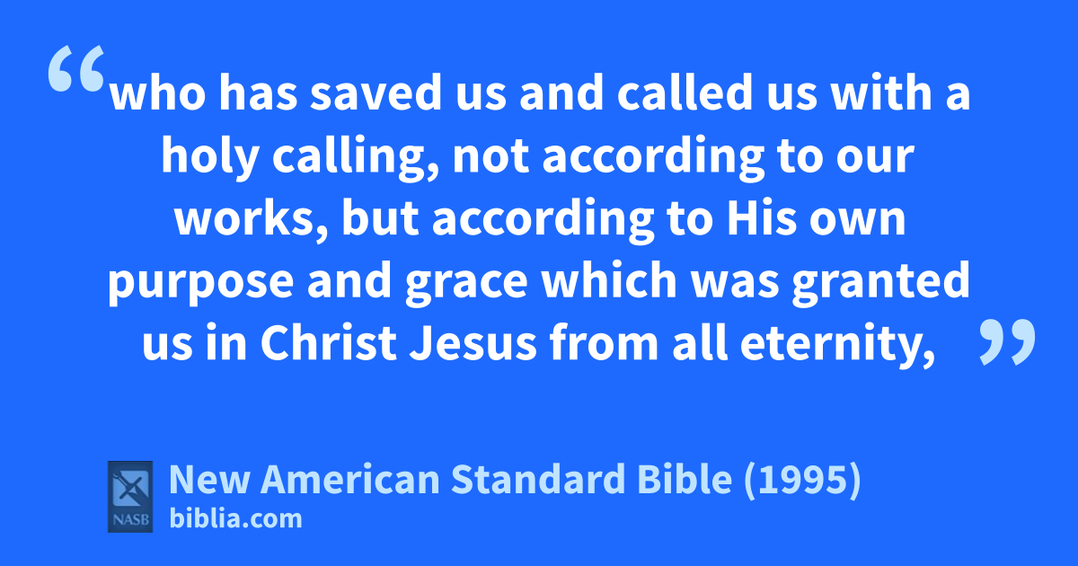 9 who has asaved us and bcalled us with a holy ccalling, dnot according to our works, but according to His own bpurpose and grace which was granted us in eChrist Jesus from fall eternity,
