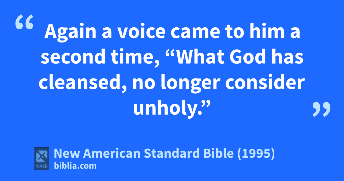 15 Again a voice came to him a second time, “aWhat God has cleansed, no longer consider 1unholy.”