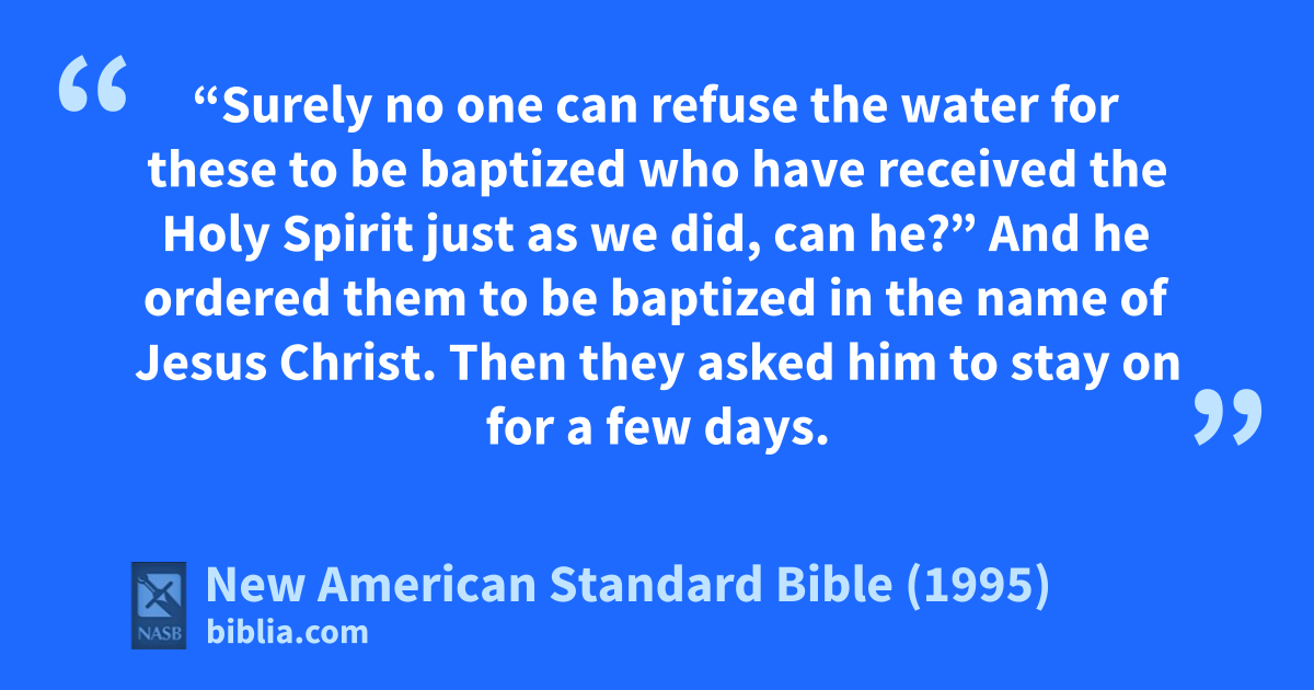 48 And he aordered them to be baptized bin the name of Jesus Christ. Then they asked him to stay on for a few days.
