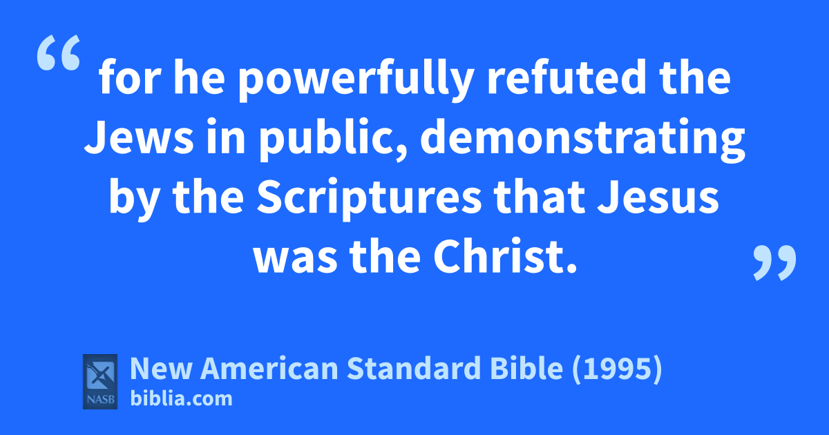 28 for he powerfully refuted the Jews in public, demonstrating aby the Scriptures that bJesus was the 1Christ.