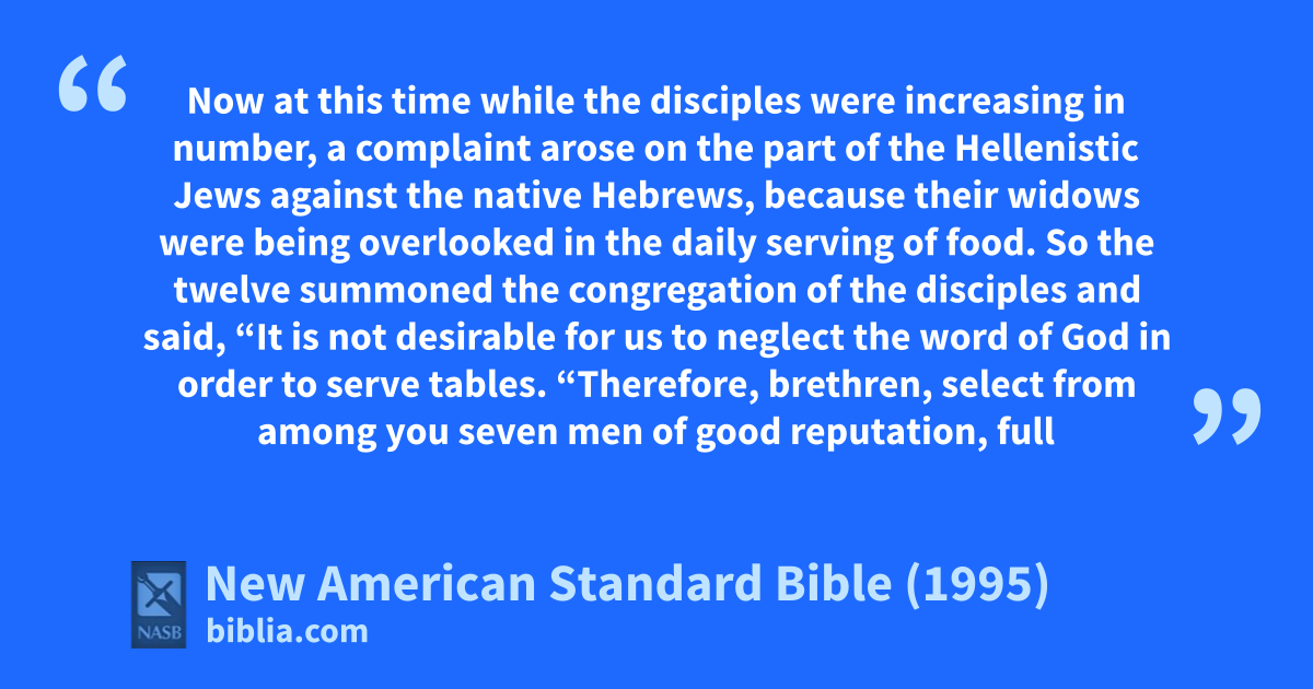 1 Now 1at this time while the adisciples were bincreasing in number, a complaint arose on the part of the 2cHellenistic Jews against the native dHebrews, because their ewidows were being overlooked in fthe daily serving of food.