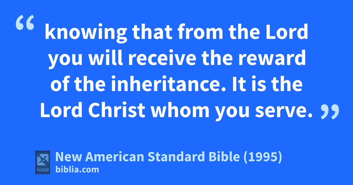 24 aknowing that from the Lord you will receive the reward 1of bthe inheritance. It is the Lord Christ whom you cserve.