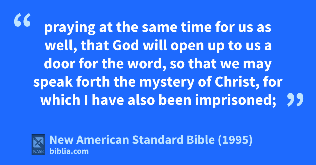 3 praying at the same time afor us as well, that God will open up to us a bdoor for cthe word, so that we may speak forth dthe mystery of Christ, for which I have also ebeen imprisoned;