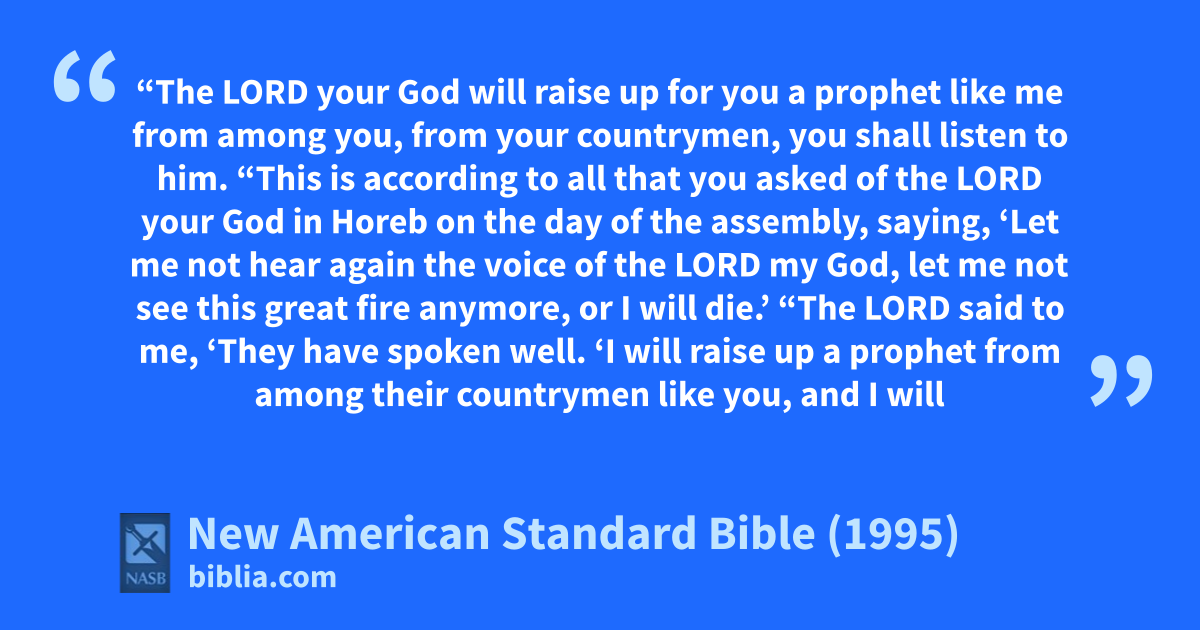 18 ‘I will raise up a prophet from among their 1countrymen like you, and aI will put My words in his mouth, and bhe shall speak to them all that I command him.