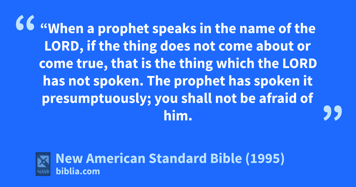 22 “aWhen a prophet speaks in the name of the Lord, if the thing does not come about or come true, that is the thing which the Lord has not spoken. The prophet has spoken it bpresumptuously; you shall not be afraid of him.