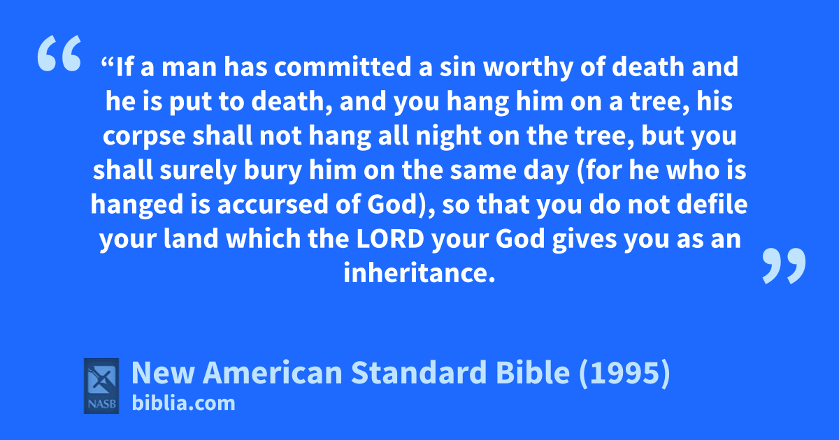 23 ahis corpse shall not hang all night on the tree, but you shall surely bury him on the same day (for bhe who is hanged is 1accursed of God), so that you cdo not defile your land which the Lord your God gives you as an inheritance.