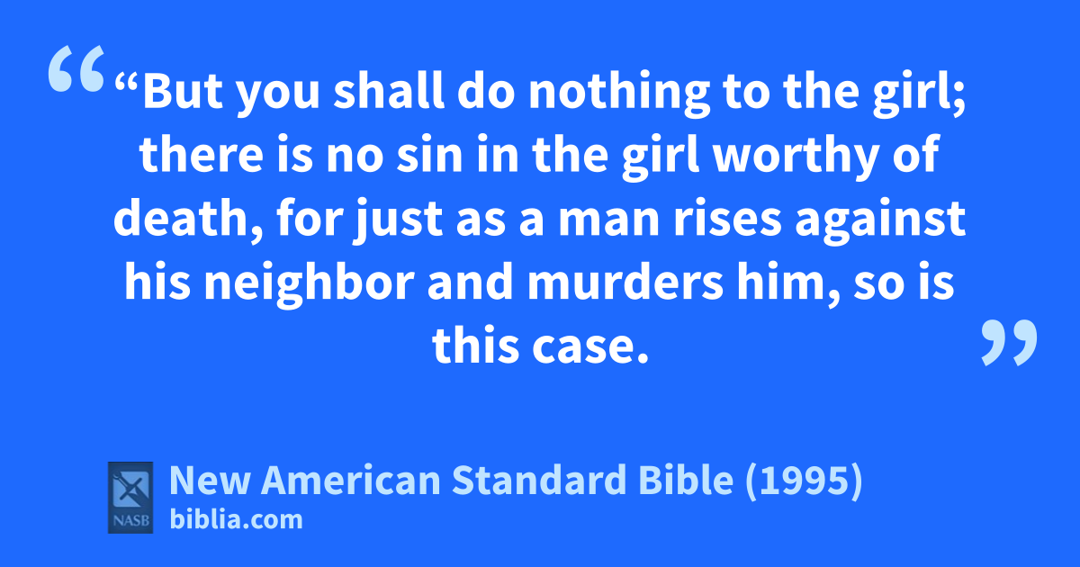 26 “But you shall do nothing to the girl; there is no sin in the girl worthy of death, for just as a man rises against his neighbor and murders him, so is this case.