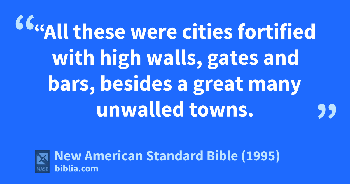 5 “All these were cities fortified with high walls, gates and bars, besides a great many 1unwalled towns.