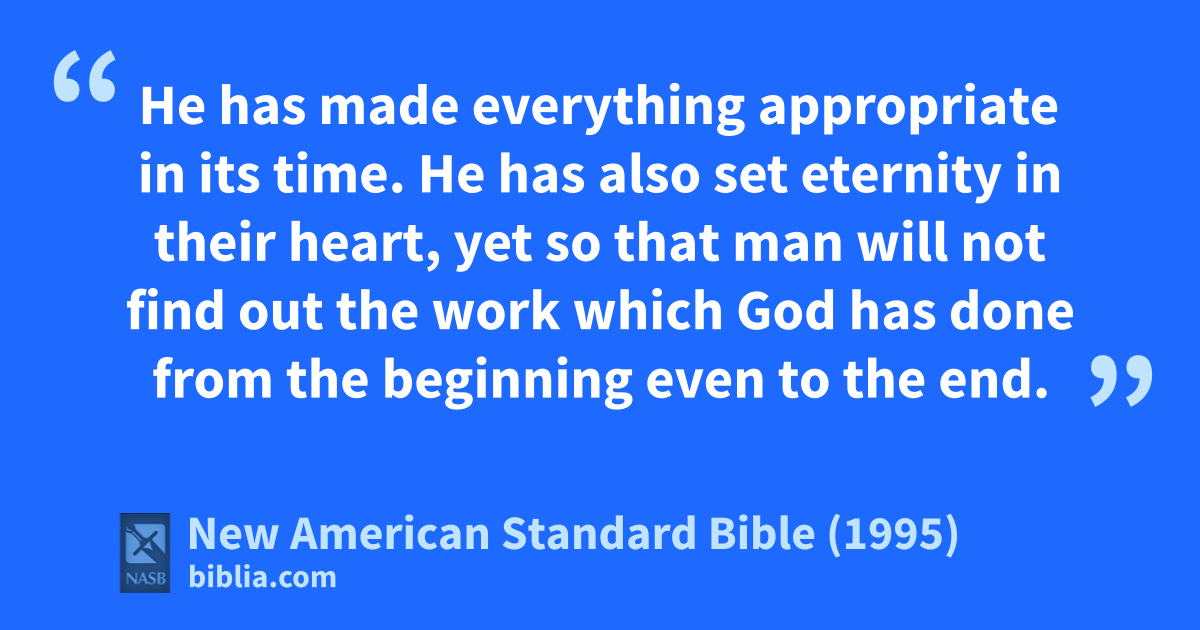 11 He has amade everything 1appropriate in its time. He has also set eternity in their heart, 2yet so that man bwill not find out the work which God has done from the beginning even to the end.