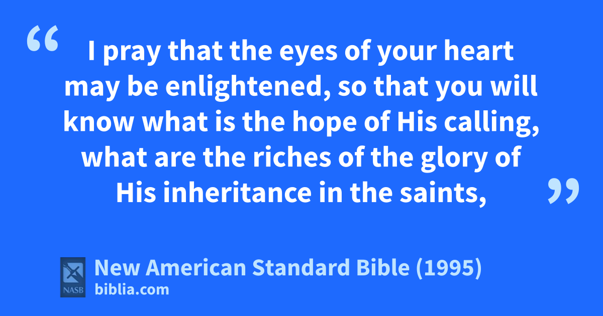 18 I pray that athe eyes of your heart 1may be enlightened, so that you will know what is the bhope of His ccalling, what are dthe riches of the glory of eHis inheritance in fthe 2saints,