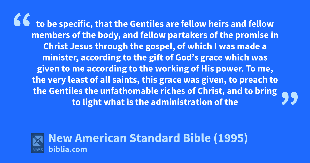 6 to be specific, that the Gentiles are afellow heirs and bfellow members of the body, and cfellow partakers of the promise in dChrist Jesus through the gospel,