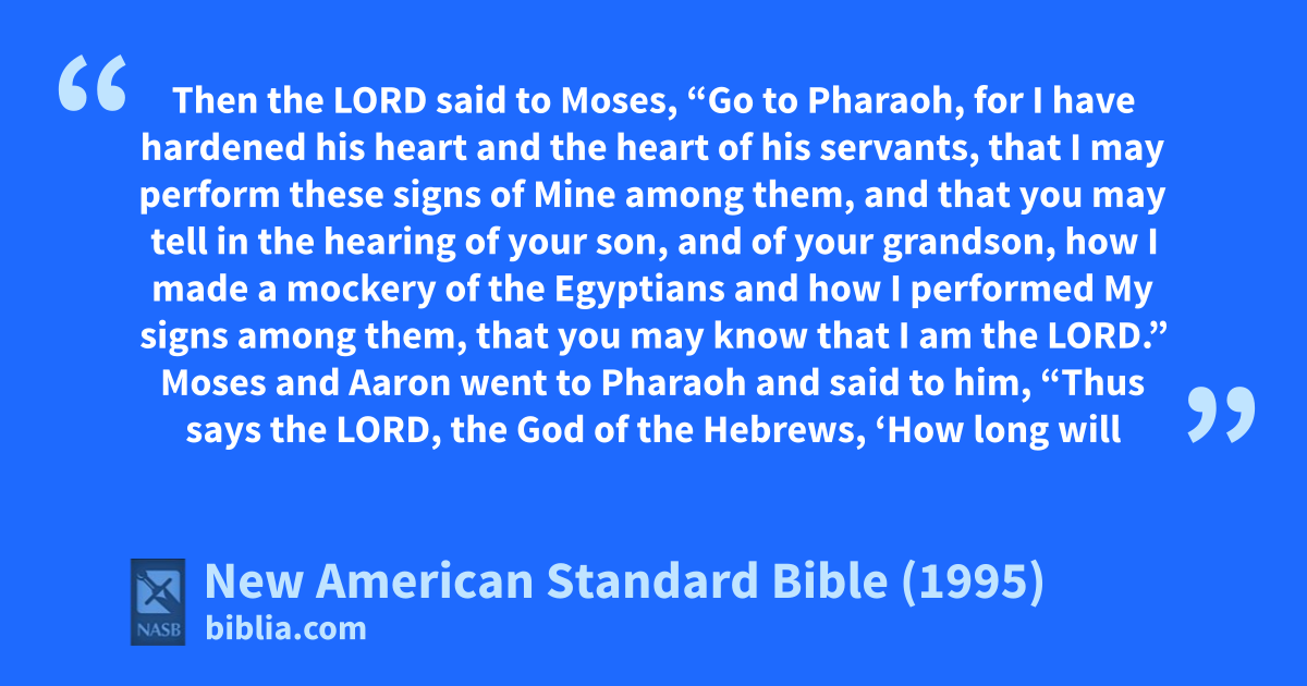 1 Then the Lord said to Moses, “Go to Pharaoh, for aI have 1hardened his heart and the heart of his servants, that I may 2perform these signs of Mine 3among them,