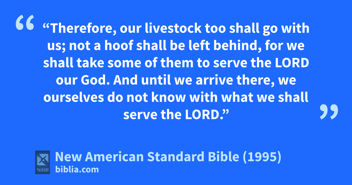 26 “aTherefore, our livestock too shall go with us; not a hoof shall be left behind, for we shall take some of them to serve the Lord our God. And until we arrive there, we ourselves do not know with what we shall serve the Lord.”