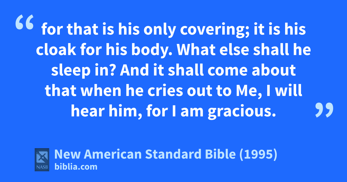 27 for that is his only covering; it is his cloak for his 1body. What else shall he sleep in? And it shall come about that awhen he cries out to Me, I will hear him, for bI am gracious.