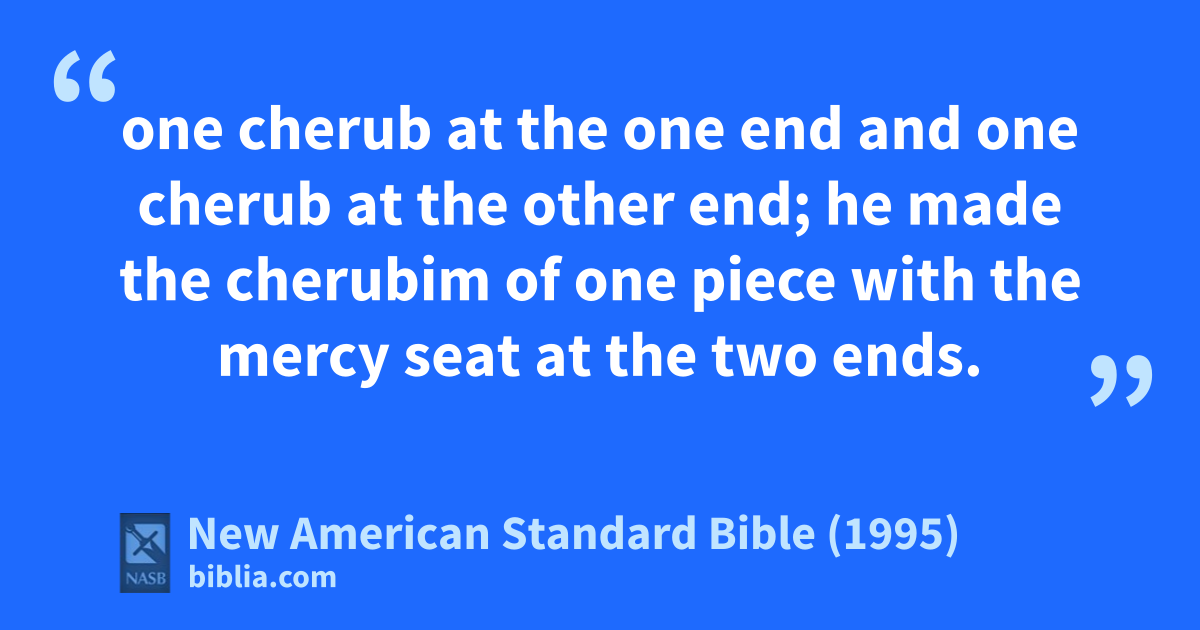 8 one cherub 1at the one end and one cherub 1at the other end; he made the cherubim of one piece with the mercy seat 1at the two ends.