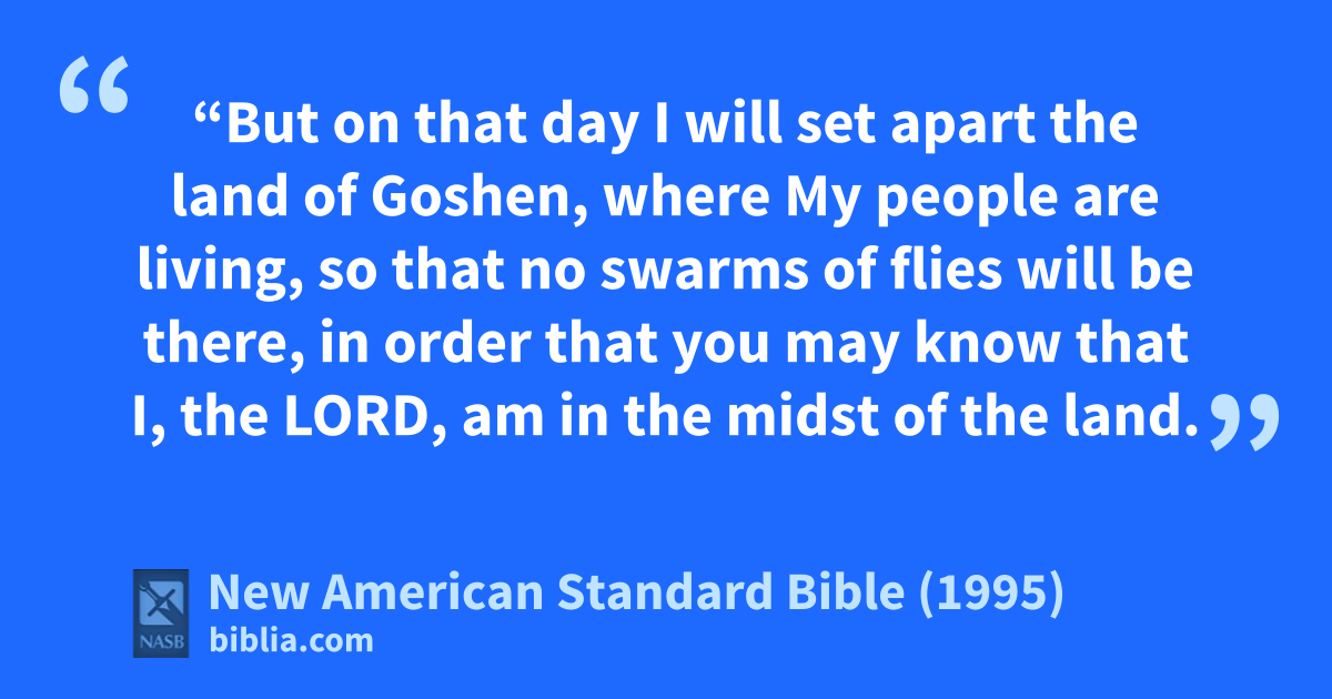 22 “aBut on that day I will set apart the land of Goshen, where My people are 1living, so that no swarms of flies will be there, in order that you may know that 2bI, the Lord, am in the midst of the land.