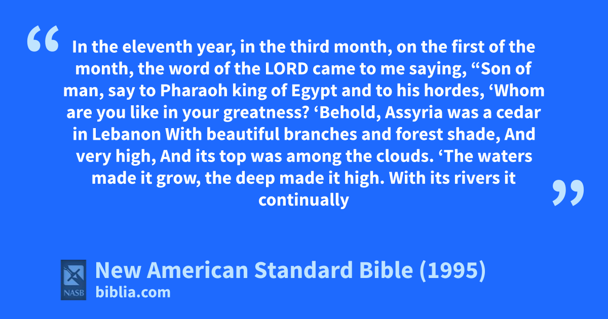 18 “To which among the trees of Eden are you thus 1equal in glory and greatness? Yet you will be brought down with the trees of Eden to the earth beneath; you will lie in the midst of the auncircumcised, with those who were slain by the sword. bSo is Pharaoh and all his hordes!” ’ declares the Lord God.”