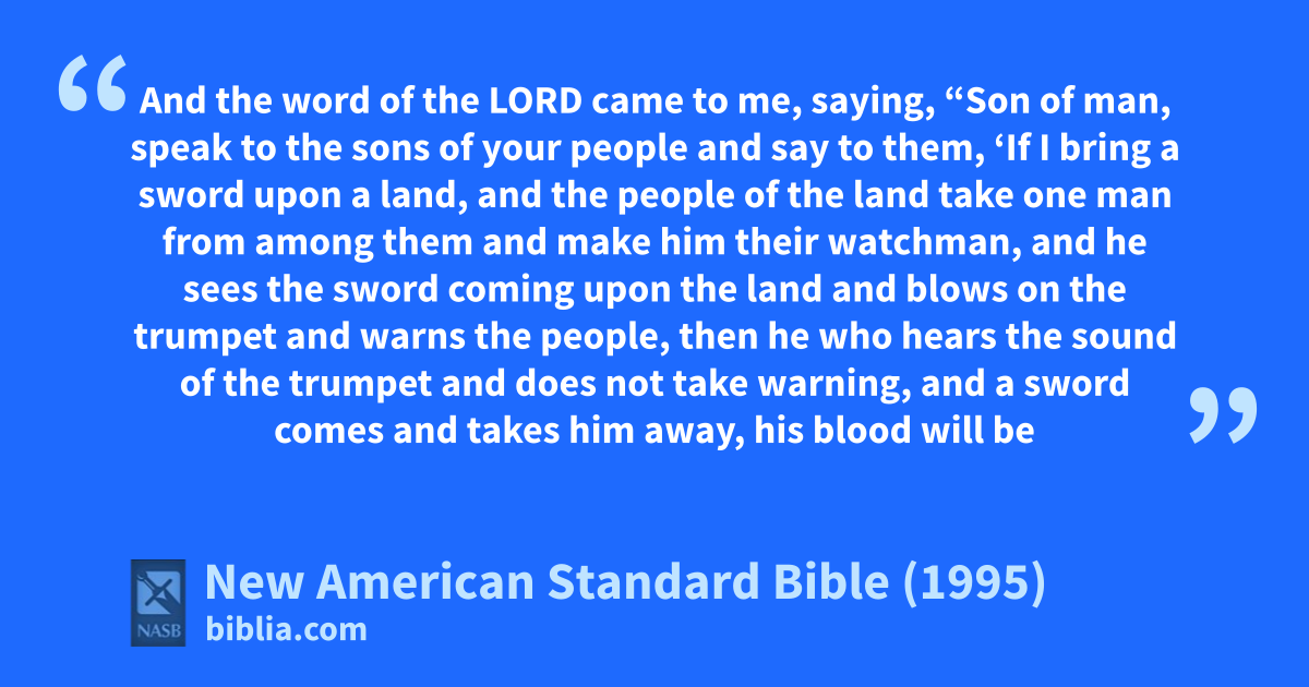 2 “Son of man, speak to the asons of your people and say to them, ‘If I bring a sword upon a land, and the people of the land take one man from among them and make him their watchman,