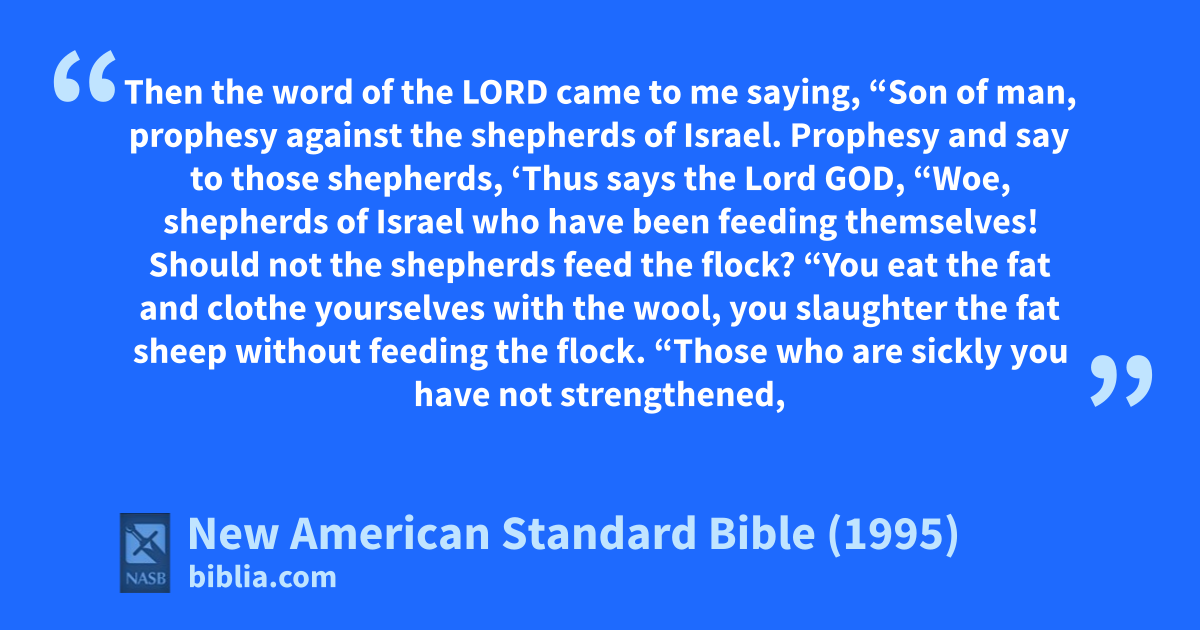 2 “Son of man, prophesy against the ashepherds of Israel. Prophesy and say to 1those shepherds, ‘Thus says the Lord 2God, “Woe, shepherds of Israel who have been 3bfeeding themselves! Should not the shepherds 3cfeed the flock?