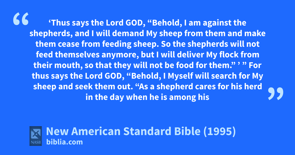 10 ‘Thus says the Lord God, “Behold, I am aagainst the shepherds, and I will demand My 1sheep 2from them and make them bcease from feeding 1sheep. So the shepherds will not 3feed themselves anymore, but I will cdeliver My flock from their mouth, so that they will not be food for them.” ’ ”
